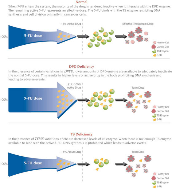 TYMS genes that will increase their risk of dose-limiting toxicity. These variations