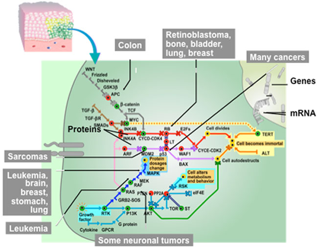 Cancer molecular diagnostics involves the measurement of DNA, RNA, proteins, or metabolites to detect a person's genetic makeup. Any changes in the DNA of a cell, or changes in chemical processes associated with it, may soon be used to determine the presence of cancer. Specifically, molecular diagnostics incorporates genomics and proteomics to evaluate expression patterns of genes and proteins.